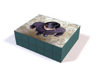 Dies ist eine der neun erstmals gezeigten Lichtbild-Installationen, die Benedikt Muer unter dem Titel "my beautiful black-box" in der Ausstellungshalle im Kölner Stapelhaus in einer Schau zusammenführt. Im Zentrum seiner raumgreifenden Installationen mit Lichtbildern (Diaprojektion und Leucht-Displays) steht das Abbild des Menschen, mal in Form von Portraits zurückgezogen lebender Ordensschwestern (The World's at least photographed), als posierende Begleitpersonen in klischeehaften Urlaubserinnerungen (Posen), oder ganz der gewöhnlichen Betrachtungsperspektive entrückt (Baihui- Scheitelportraits). Kennzeichnend für die Übertragung der sowohl gefundenen als auch erstellten Ausgangsbilder ist ein assoziativer Umgang mit den Materialien, welche den projizierten Dias als Bildgründe dienen: Stahlwolle, Wattepads, Glasbausteine und anderes verleihen den Bildern ein räumliches, aber auch spekulatives Wesen. Dadurch entstehen Transformationen von gewohnten Ansichten des Menschen, indem das Motiv mit seinem Bildgrund eine ambivalente Symbiose eingeht. Die Auseinandersetzung mit unterschiedlichen Wahrnehmungen durch verschiedene Blickwinkel, Verschwinden und Auftauchen von Bildern und ihre "Durchlässigkeit" sind typische Merkmale in Muers Lichtbild-Installationen. Sie eröffnen ungewohnte Wahrnehmungsebenen und zeugen dabei von seiner intensiven Auseinandersetzung mit den gewählten Materialien, der geistreichen Auslotung des Themas und einer malerischen Herangehensweise des Künstlers. my beautiful BLACK-BOX kann hier neben der konkreten Raumsituation der verdunkelten Halle als ein Raum der subjektiven "Wandlung" verstanden werden.
