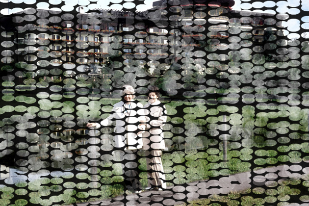 The world's at least photographed (Kontemplation) - (Die am wenigsten Fotografierten der Welt) Diaprojektion, Handgeflochtene Stahlwolle, Stahlrahmen, Sperrholz, Technik - 2m x 1,33m |